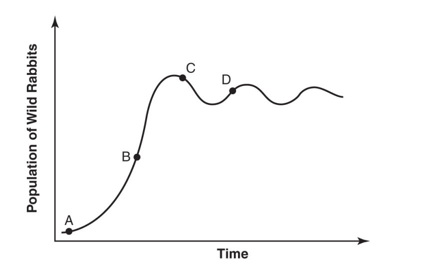 Q36. Refer to the figure, which shows the population of wild rabbits on an island as time progresses.