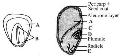 Coleorhiza protects the radicle. Endosperm stores food. Grapes can be parthenocarpic. Mango is a drupe from superior ovary. Maize has a membranous seed coat fused with fruit wall.