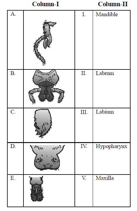 Q111. Match the body structures of cockroach given in column I to their correct labelling given in column-II and choose the correct option.