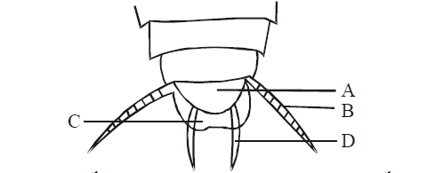 Q23. The diagram given below represents the reproductive organ of male cockroach. Choose the correct labelling of the part of marked as A, B, C and D.
