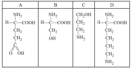 Q3. Which one out of A-D given below correctly represents the structural formula of the basic amino acid [2012]