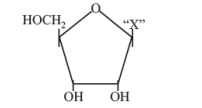 The structure shown is a nucleoside (base + sugar). If the answer key says (d) Nucleoside/Uracil, it implies the base 'X' is Uracil (though structure appears purine-like in some representations, usually U is single ring. The exam key accepted d).