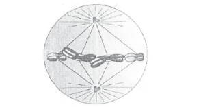 Q33. A stage of mitosis is shown in the diagram. Which stage is it and what are its characteristics? [NEET Kar. 2013]